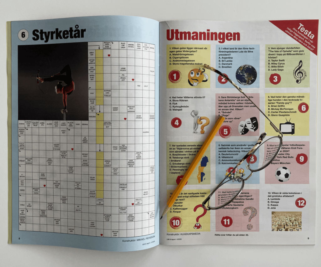 Det kommer ut 12 nya nummer av Lätt och Lagom varje år, ett nummer i månaden. Varje nummer är fullproppat med nya kryss och kluringar, från klassiker som Porträttet och Musikaliskt till moderna favoriter som Ordflätan.