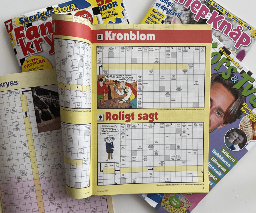Ja, det finns mer än korsord i tidningen Bra korsord. Det finns bland annat ordflätor, Bit för bit, musikkryss och andra ordpussel.